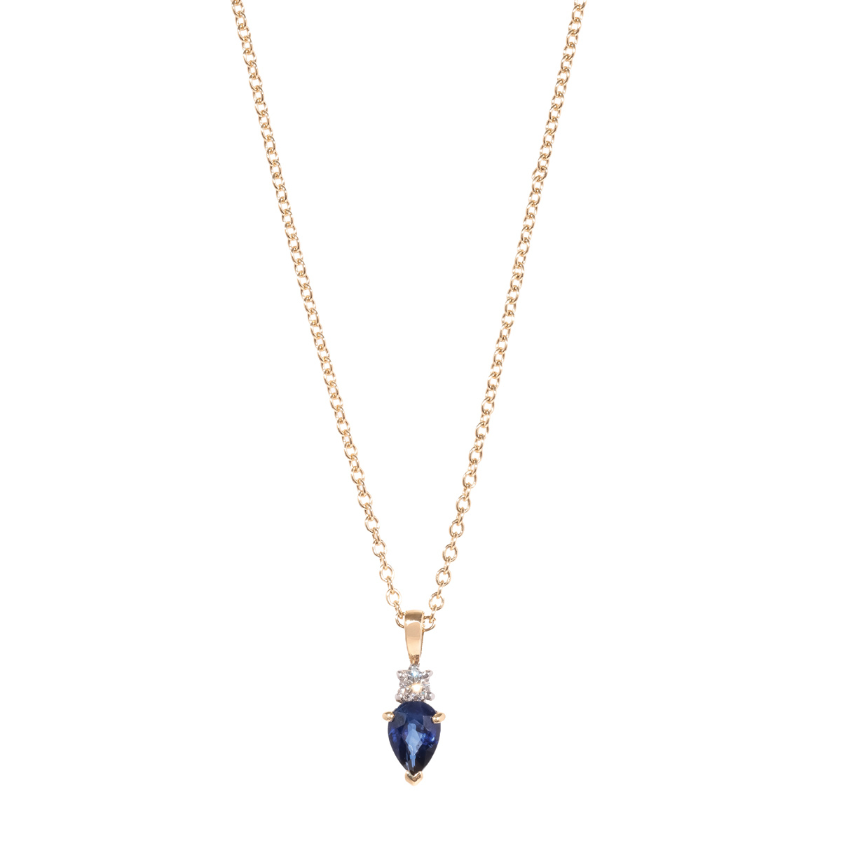 18ct Yellow & White Gold Pear Shape Sapphire & Diamond Pendant – on chain