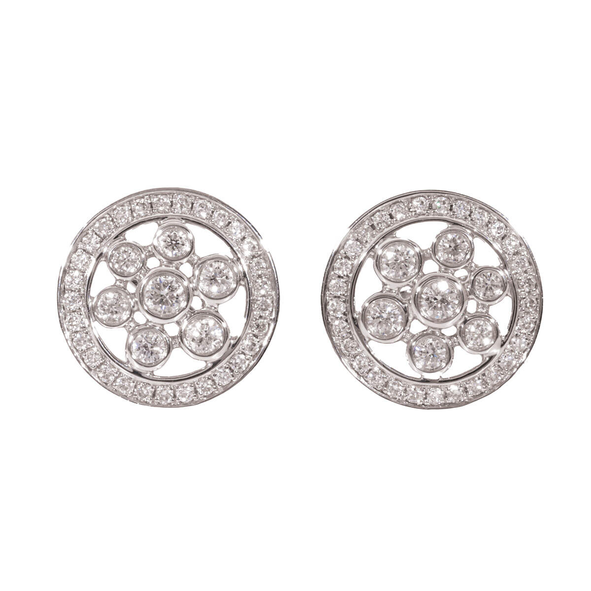 18ct White Gold Bubble Design Circle Earrings