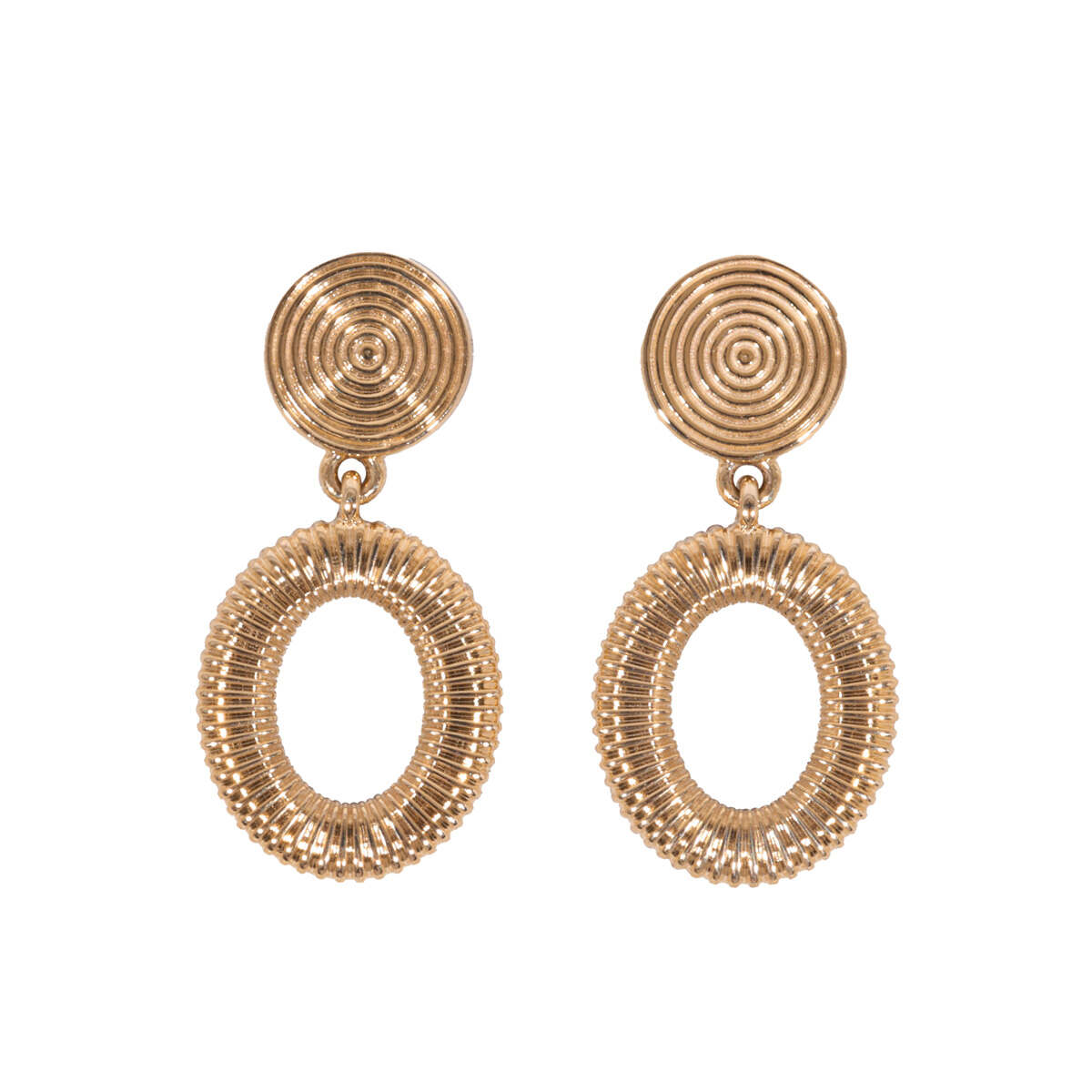 9ct Yellow Gold Circle & Oval Drop Earrings