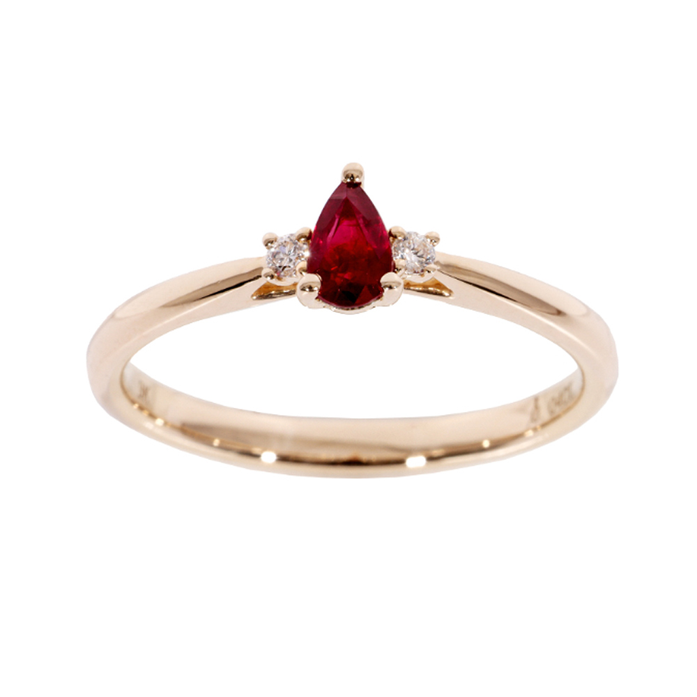 9ct Yellow Gold Ruby & Diamond Three Stone Ring