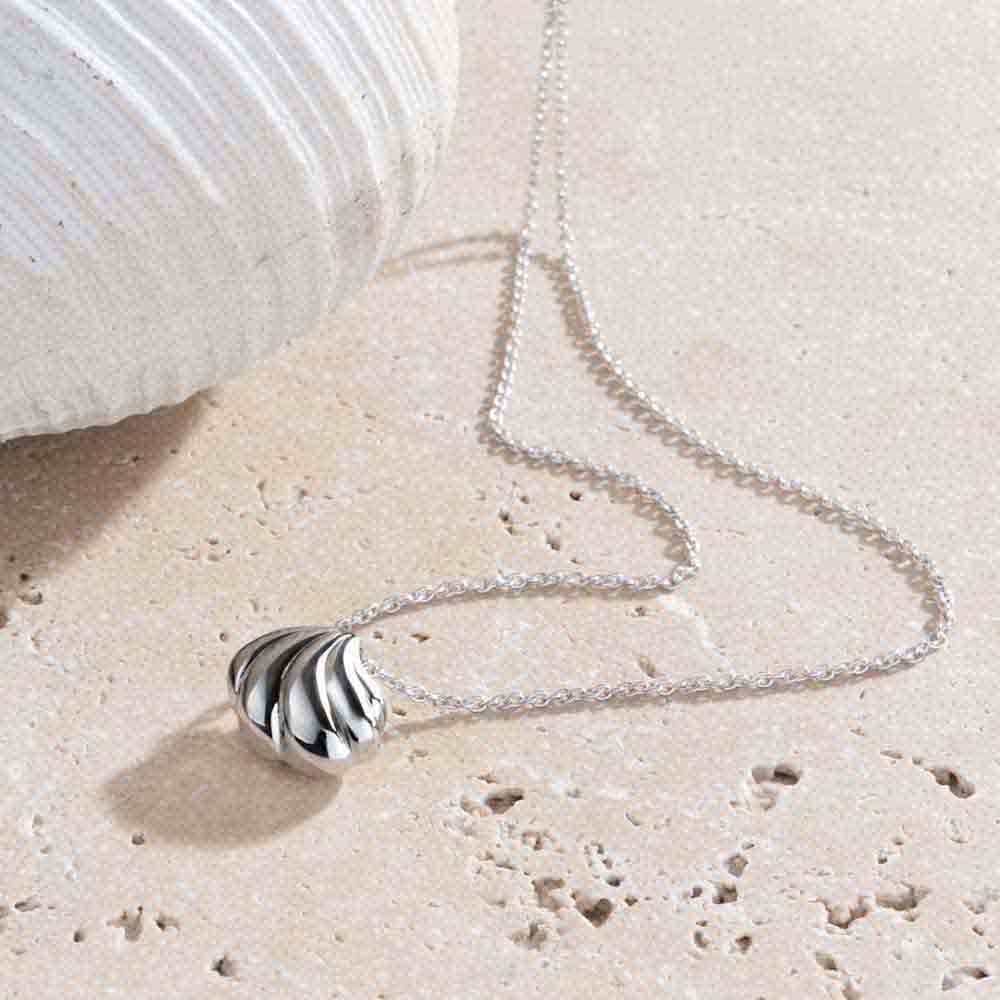 Inspired by the soft rhythm of the ocean, this confident Sterling Silver necklace echoes the natural curves of a shell in a gently rounded, polished form.