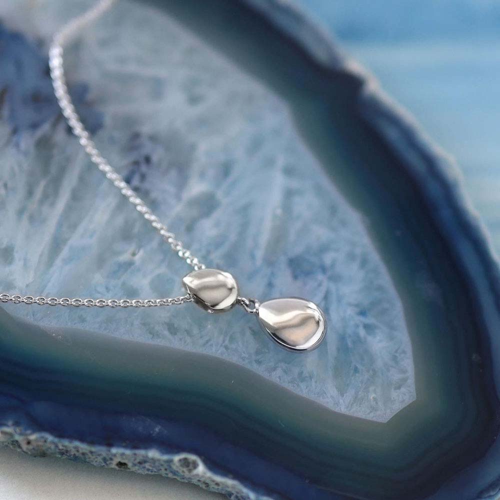 Graceful with natural movement, the Coast Pebbles twin droplet necklace features a duo of organic shaped premium sterling silver, rhodium-plated pebbles on a fine sterling silver chain.