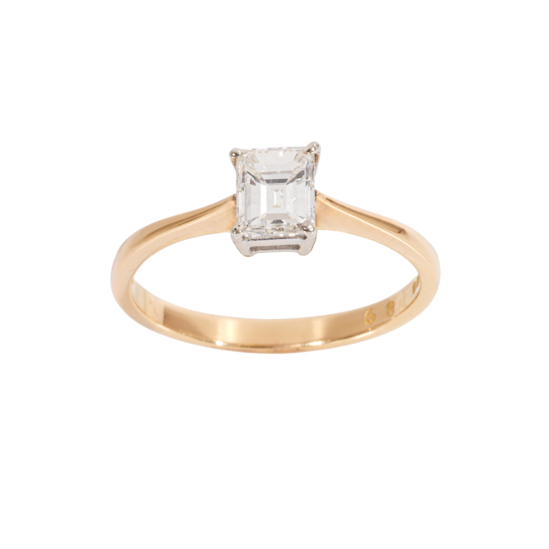 Pre Owned 18ct Gold Emerald Cut Solitaire Diamond Ring