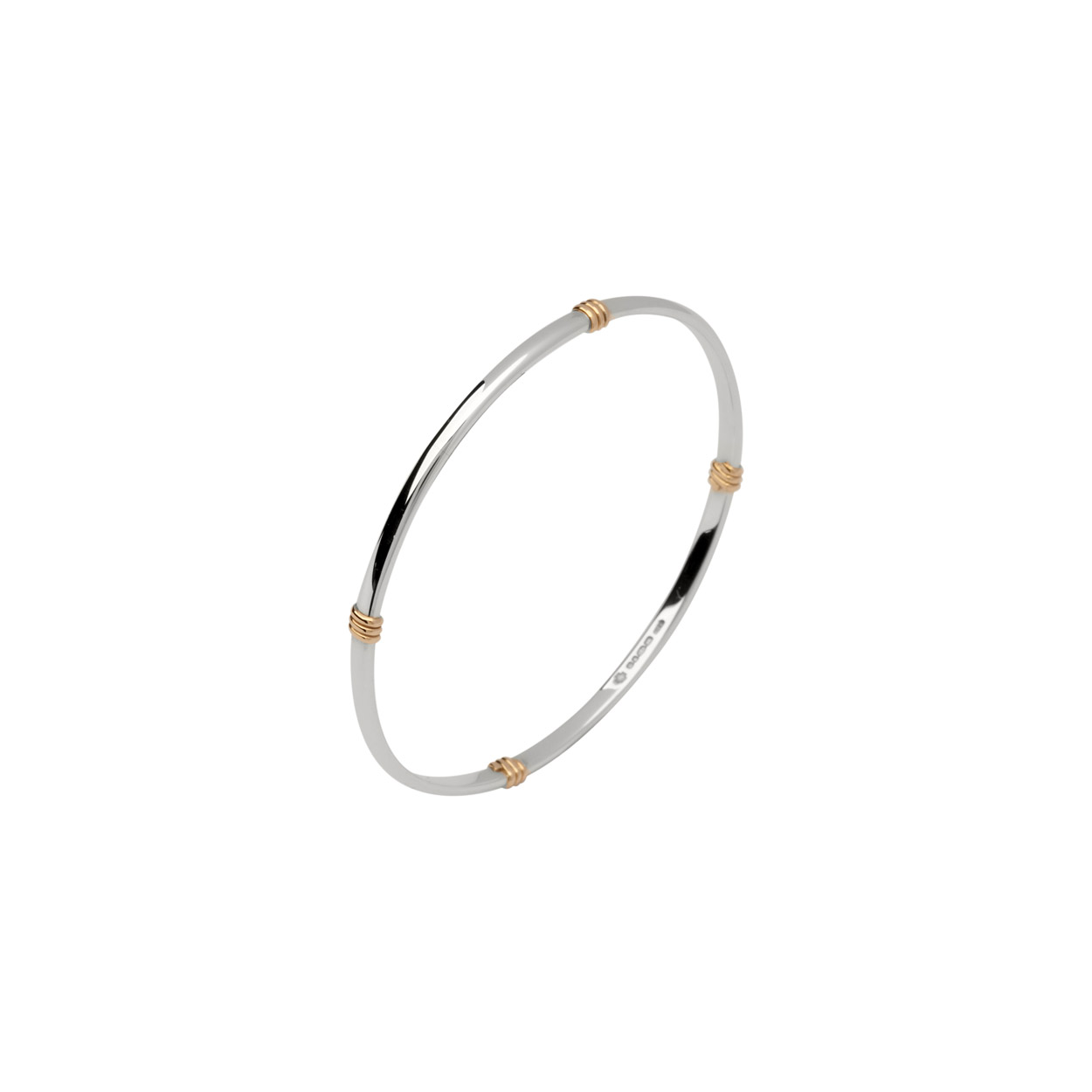 Silver Hand Made 3mm D-Shape Slave Bangle, with 9ct Yellow Gold Details
