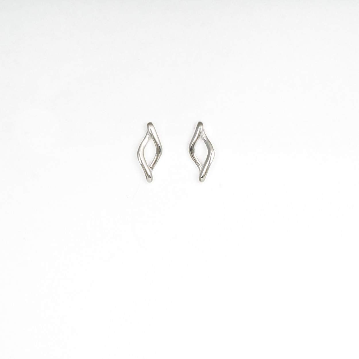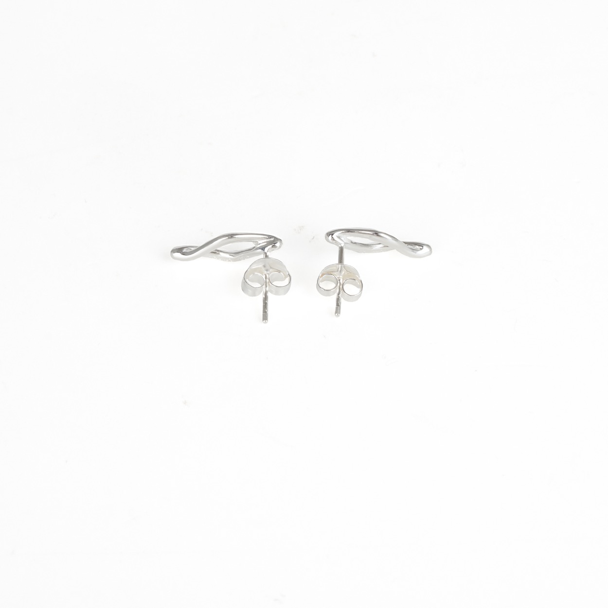 Silver twisted wavey link open stud earrings