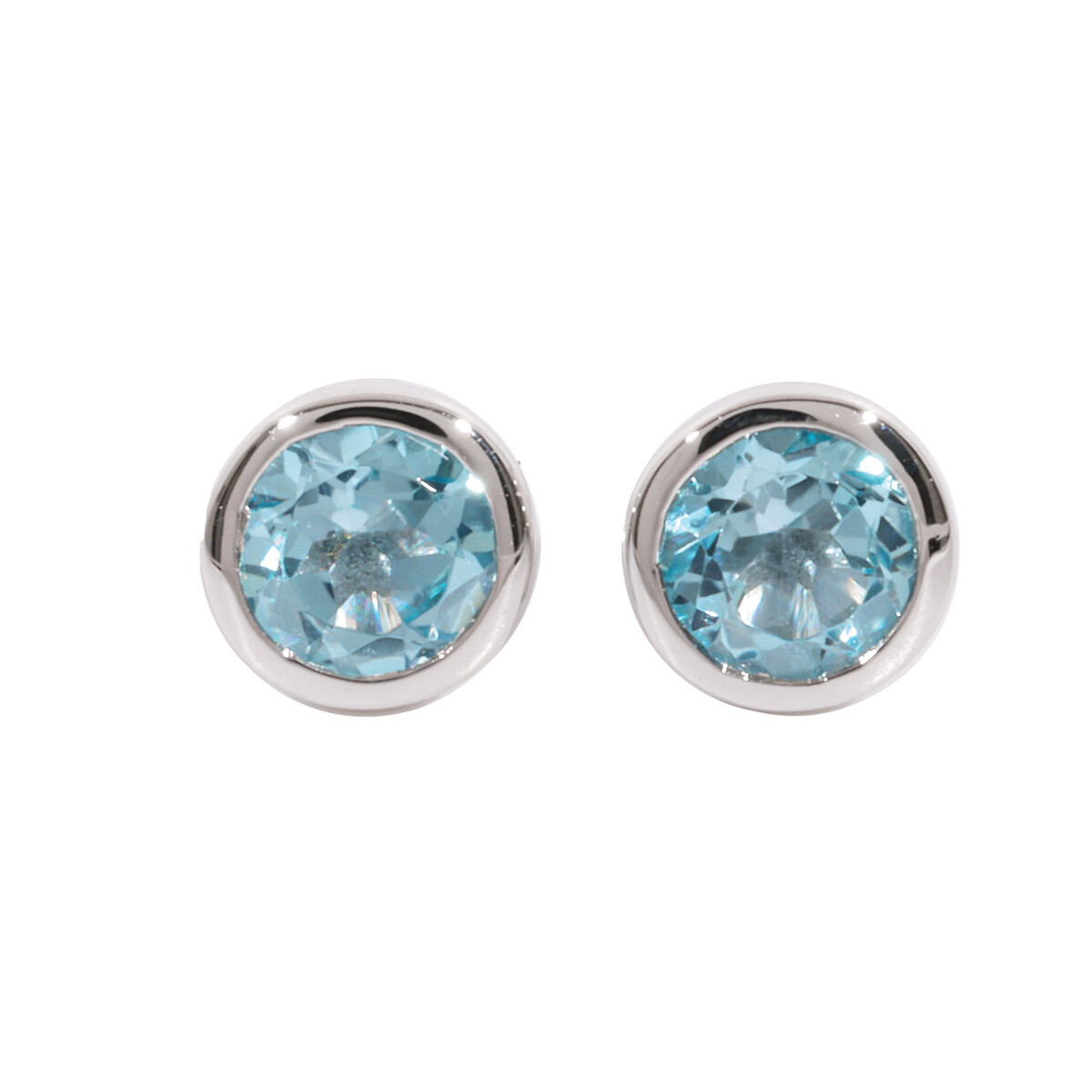 Silver Rubover Set Blue Topaz Stud Earrings