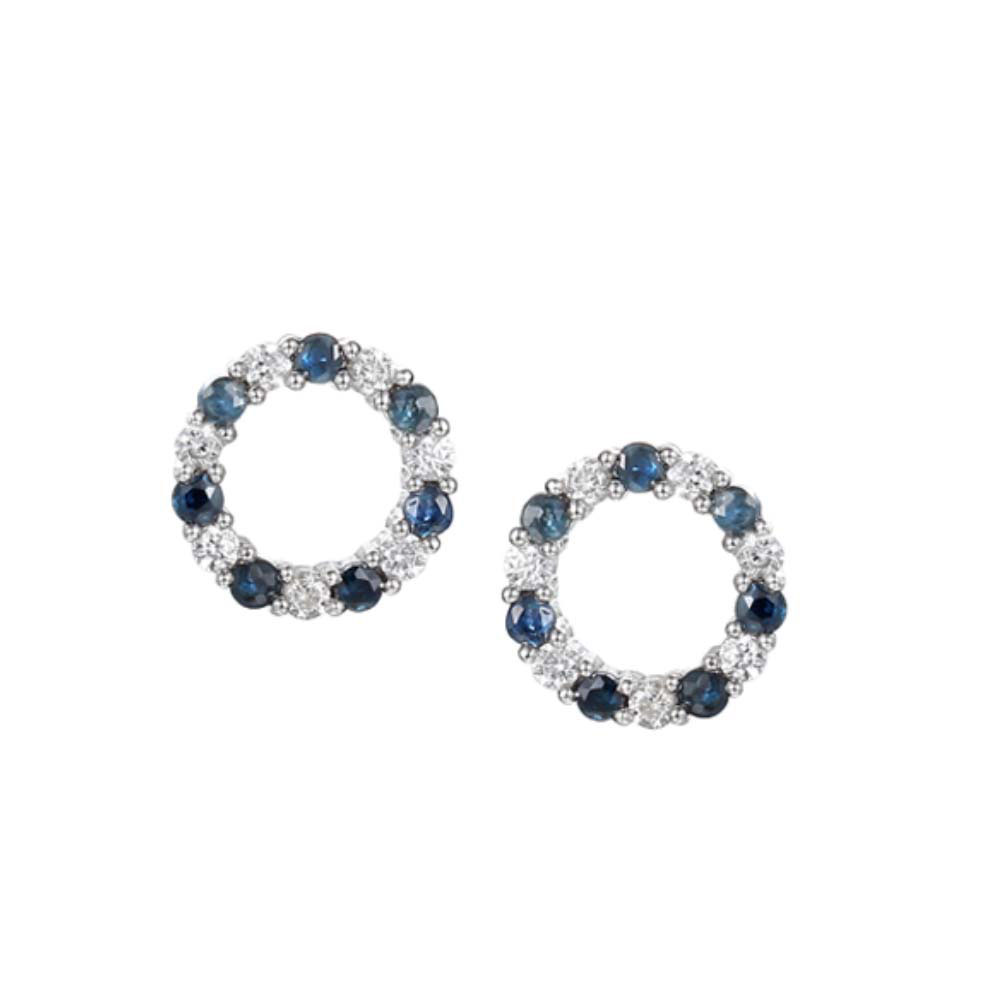 Silver Sapphire & CZ Open Circle Stud Earrings