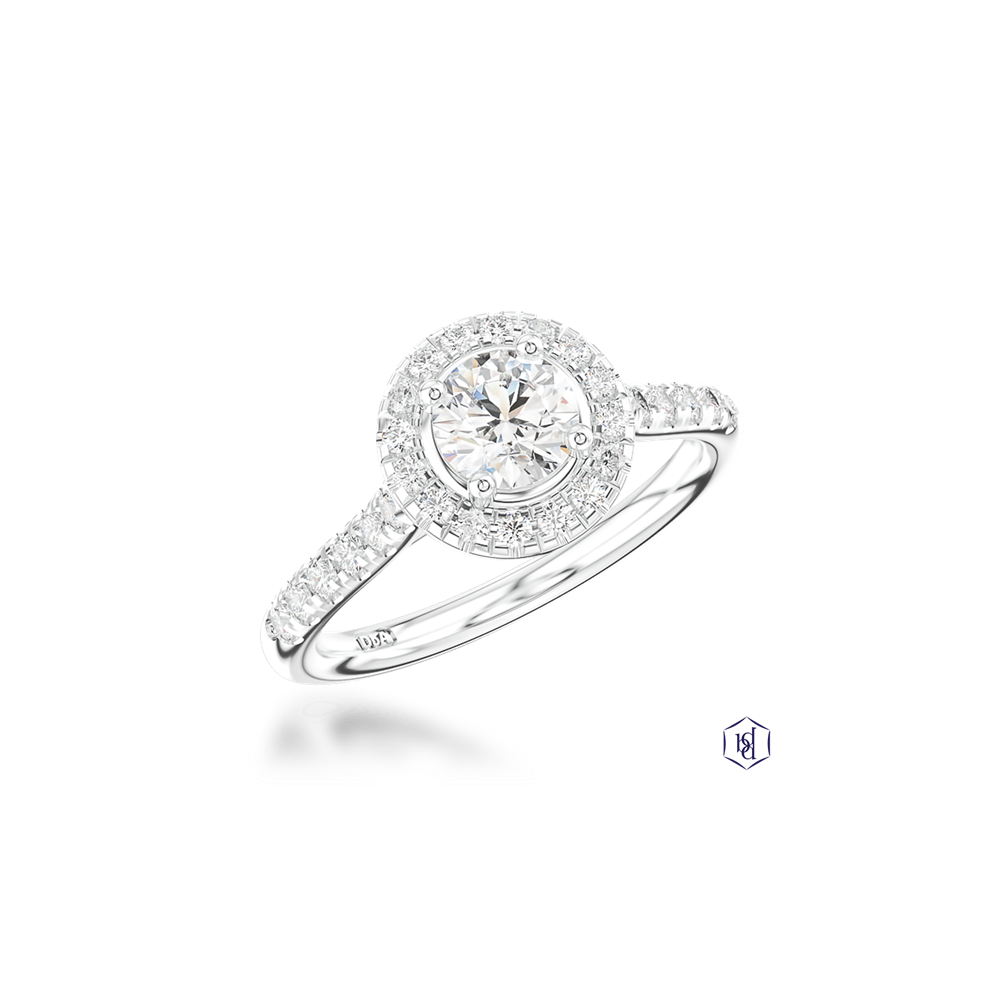 Round Brilliant Cut Diamond in a Platinum Cluster Diamond Band